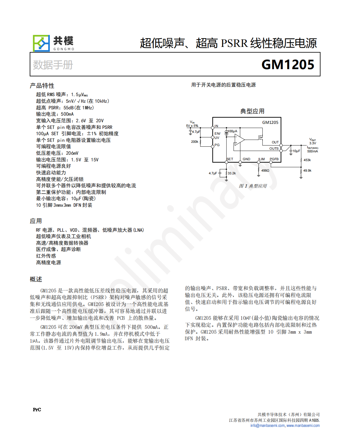GM1205ACPZ_低噪聲、高 PSRR 線性穩(wěn)壓電源
