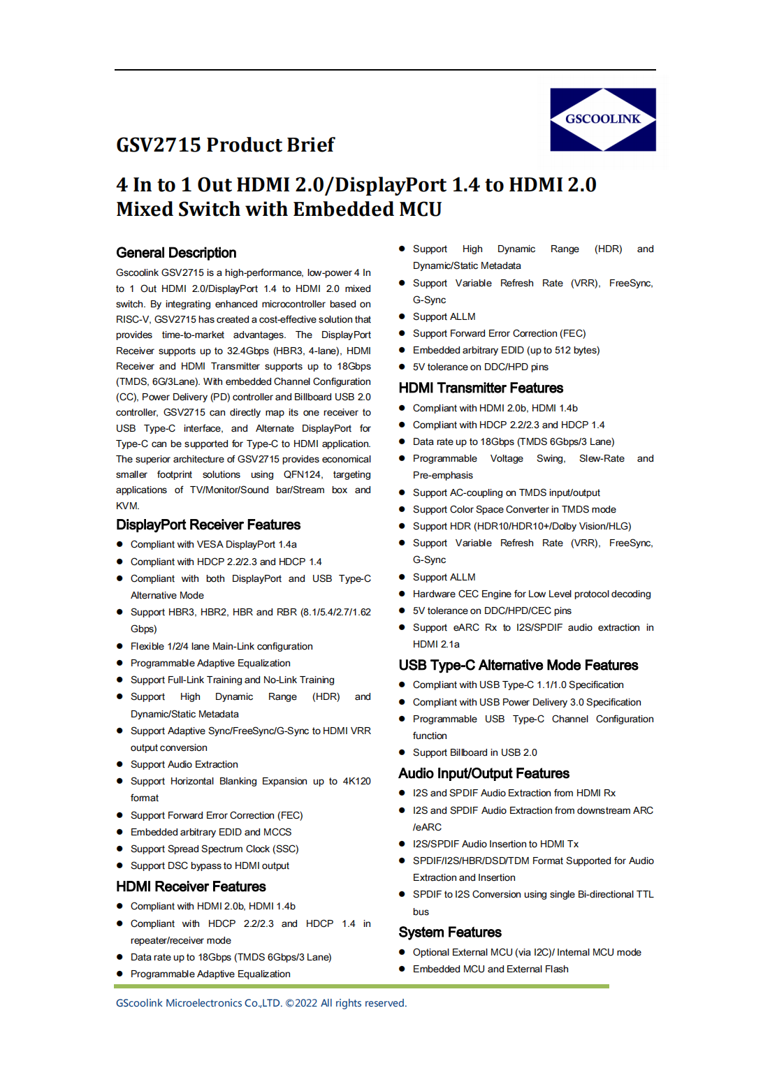 GSV2715_TypeC/DP/HDMI混合切換器芯片