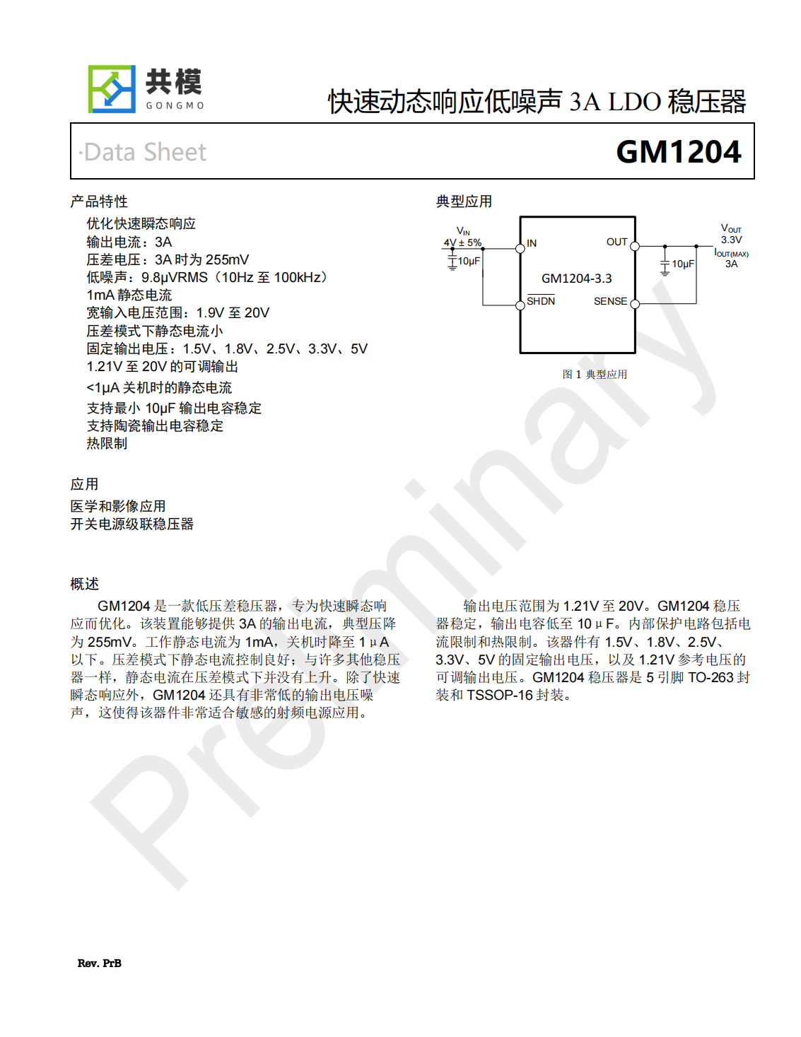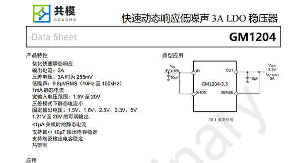 GM1204是一款低壓差穩(wěn)壓器,專(zhuān)為快速瞬態(tài)響應(yīng)而優(yōu)化。該裝置能夠提供3A的輸出電流,典型壓降為255mV。工作靜態(tài)電流為1mA,關(guān)機(jī)時(shí)降至1μA以下。壓差模式下靜態(tài)電流控制良好;與許多其他穩(wěn)壓器一樣,靜態(tài)電流在壓差模式下并沒(méi)有上升。除了快速瞬態(tài)響應(yīng)外,GM1204還具有非常低的輸出電壓噪聲,這使得該器件非常適合敏感的射頻電源應(yīng)用。輸出電壓范圍為1.21V至20V。GM1204穩(wěn)壓器穩(wěn)定,輸出電容低至10μF。內(nèi)部保護(hù)電路包括電流限制和熱限制。該器件有1.5V、1.8V、2.5V、3.3V、5V的固定輸出電壓,以及1.21V參考電壓的可調(diào)輸出電壓。GM1204穩(wěn)壓器是5引腳TO-263封裝和TSSOP-16封裝。
