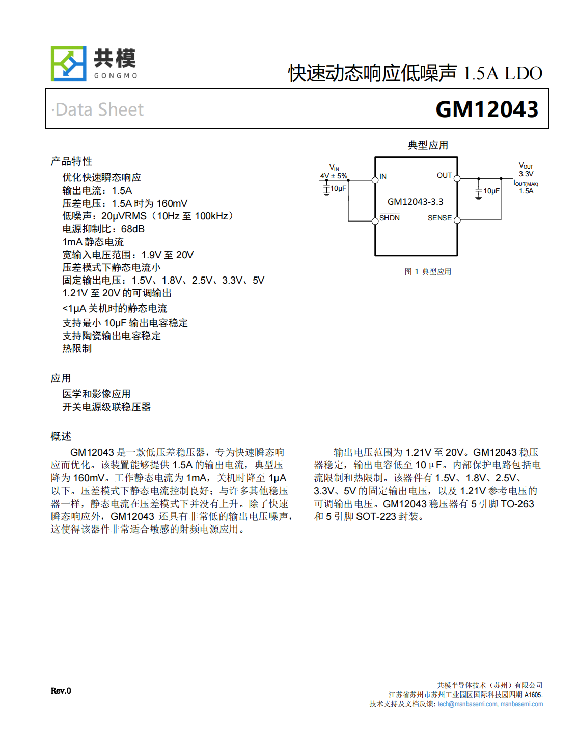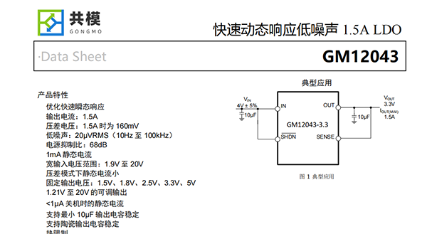 GM12043是一款低壓差穩(wěn)壓器,專為快速瞬態(tài)響應(yīng)而優(yōu)化。該裝置能夠提供1.5A的輸出電流,典型壓降為160mV。工作靜態(tài)電流為1mA,關(guān)機時降至1μA以下。壓差模式下靜態(tài)電流控制良好;與許多其他穩(wěn)壓器一樣,靜態(tài)電流在壓差模式下并沒有上升。除了快速瞬態(tài)響應(yīng)外,GM12043還具有非常低的輸出電壓噪聲,這使得該器件非常適合敏感的射頻電源應(yīng)用。輸出電壓范圍為1.21V至20V。GM12043穩(wěn)壓器穩(wěn)定,輸出電容低至10μF。內(nèi)部保護電路包括電流限制和熱限制。該器件有1.5V、1.8V、2.5V、3.3V、5V的固定輸出電壓,以及1.21V參考電壓的可調(diào)輸出電壓。GM12043穩(wěn)壓器有5引腳TO-263和5引腳SOT-223封裝。