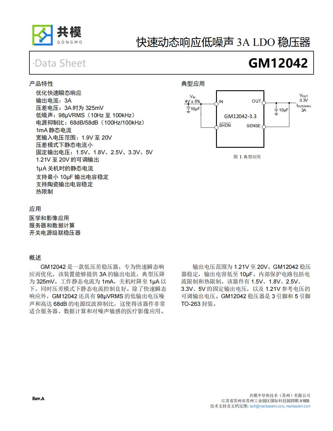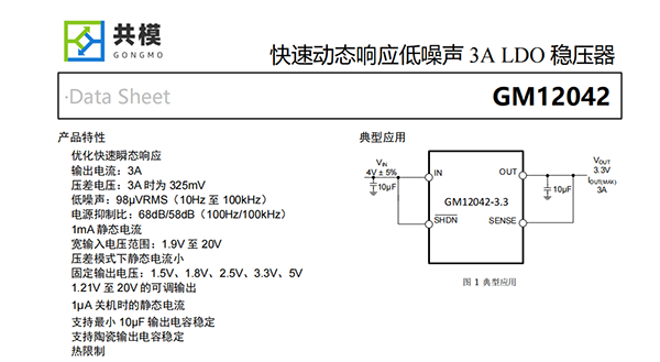 GM12042是一款低壓差穩(wěn)壓器,專為快速瞬態(tài)響應(yīng)而優(yōu)化。該裝置能夠提供3A的輸出電流,典型壓降為325mV。工作靜態(tài)電流為1mA,關(guān)機時降至1μA以下,同時壓差模式下靜態(tài)電流控制良好。除了快速瞬態(tài)響應(yīng)外,GM12042還具有98μVRMS的低輸出電壓噪聲和高達68dB的電源紋波抑制比,這使得該器件非常適合服務(wù)器、數(shù)據(jù)計算和對噪聲敏感的醫(yī)療影像應(yīng)用。