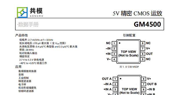 GM4500/GM45002是工業(yè)應(yīng)用中噪聲最低的精確CMOS放大器,實(shí)現(xiàn)了高直流精度和功耗的均衡性。