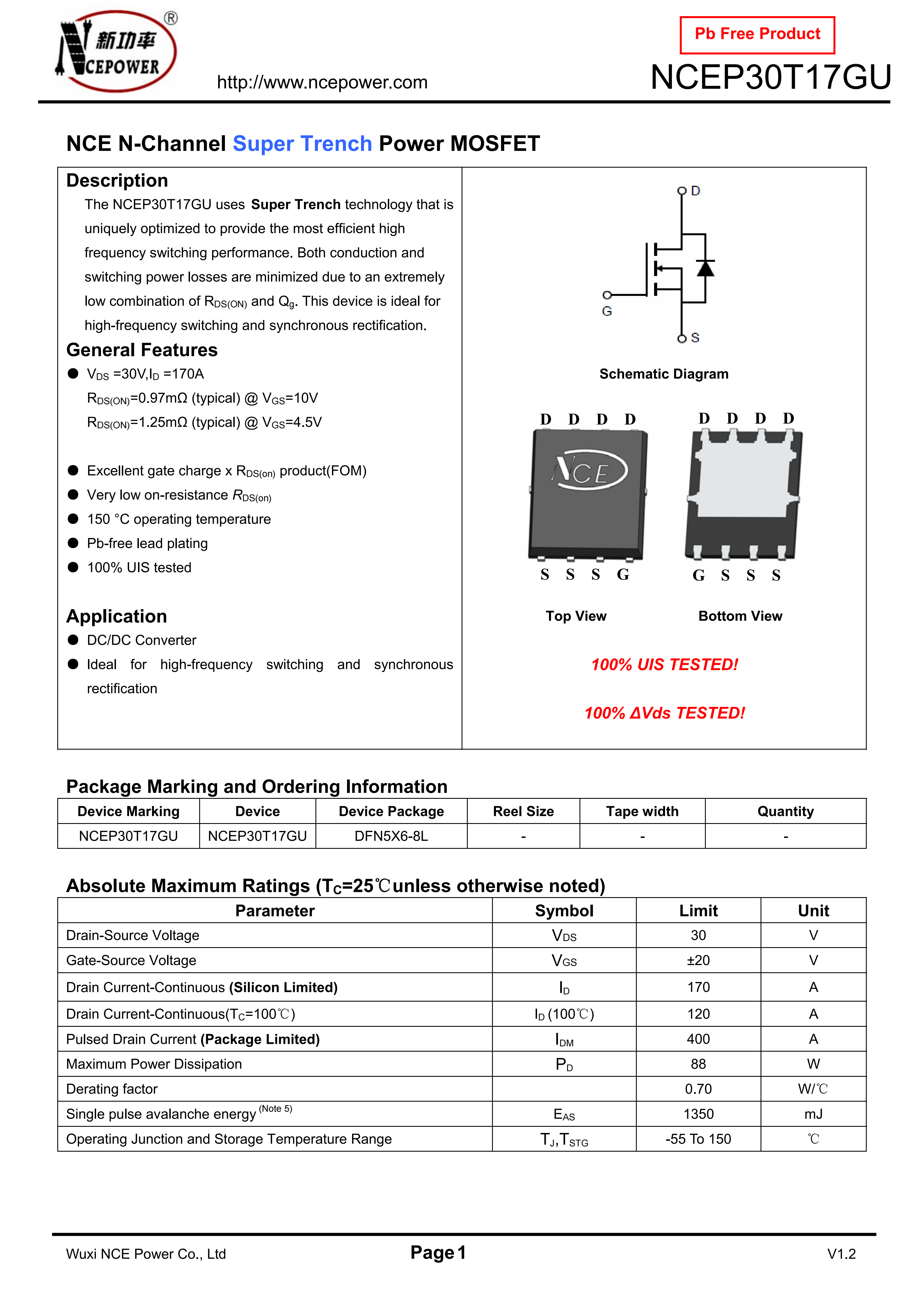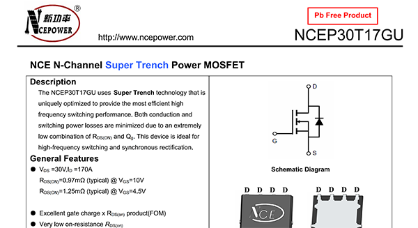 The NCEP30T17GU uses Super Trench technology that is uniquely optimized to provide the most efficient high frequency switching performance
