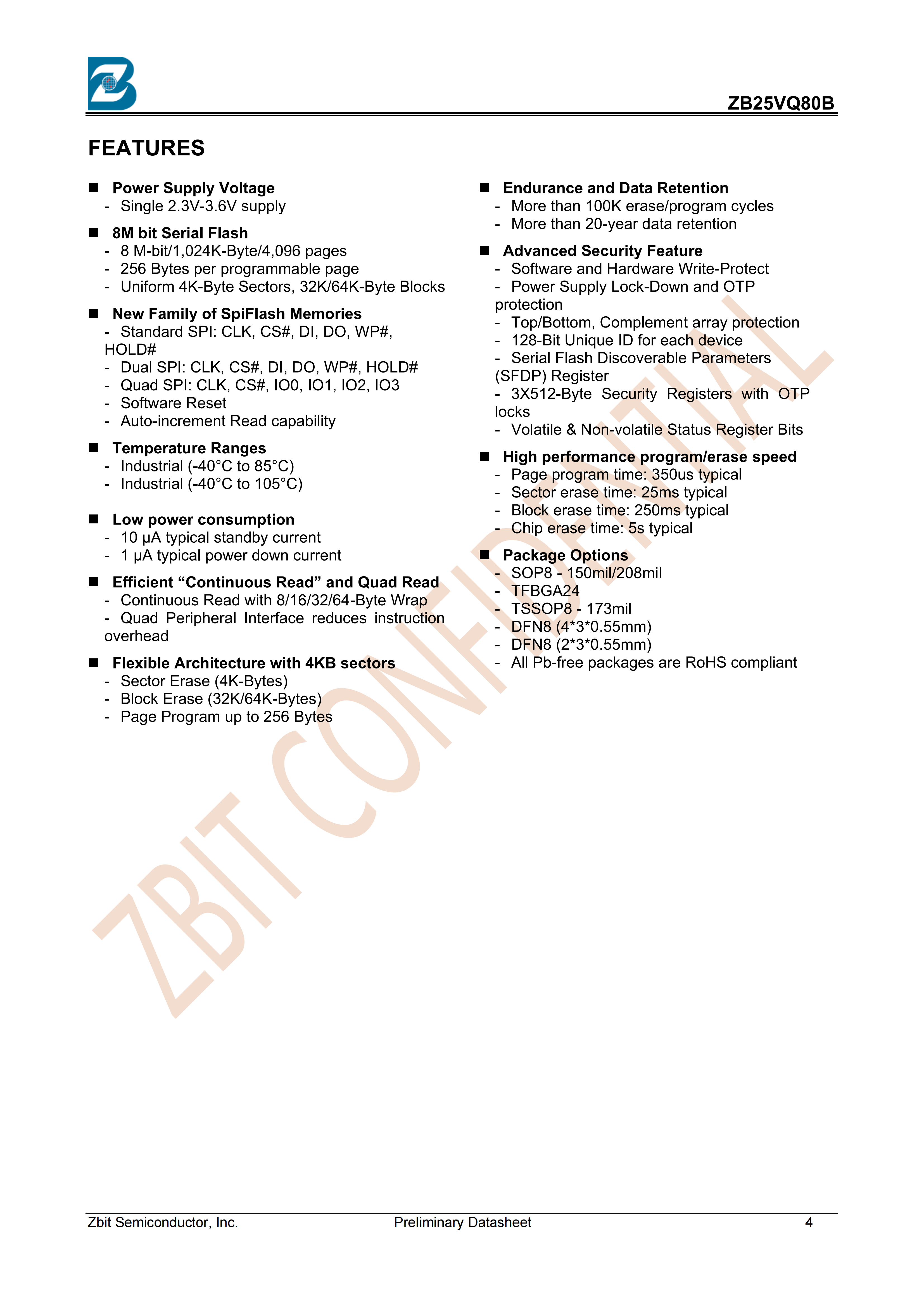3.3V 8M-BIT SERIAL NOR FLASH WITH DUAL AND QUAD SPI