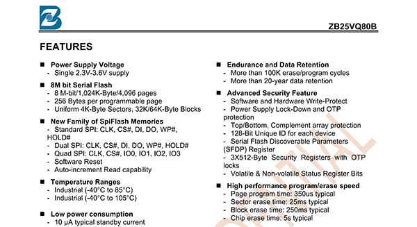 ZB25VQ80BTJG_8M 3.3V窄體NOR Flash