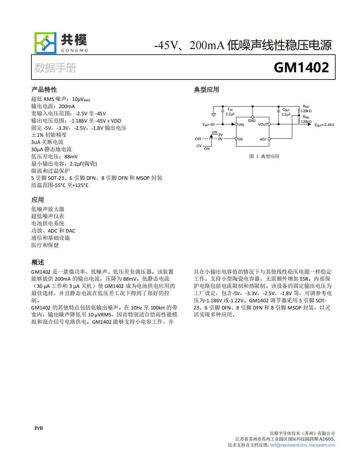 GM1402是一款微功率、低噪聲、低壓差負調(diào)壓器。該裝置能夠提供200mA的輸出電流,壓降為88mV。低靜態(tài)電流(30μA工作和3μA關(guān)機)使GM1402成為電池供電應(yīng)用的最佳選擇,并且靜態(tài)電流在低壓差工況下得到了很好的控制。