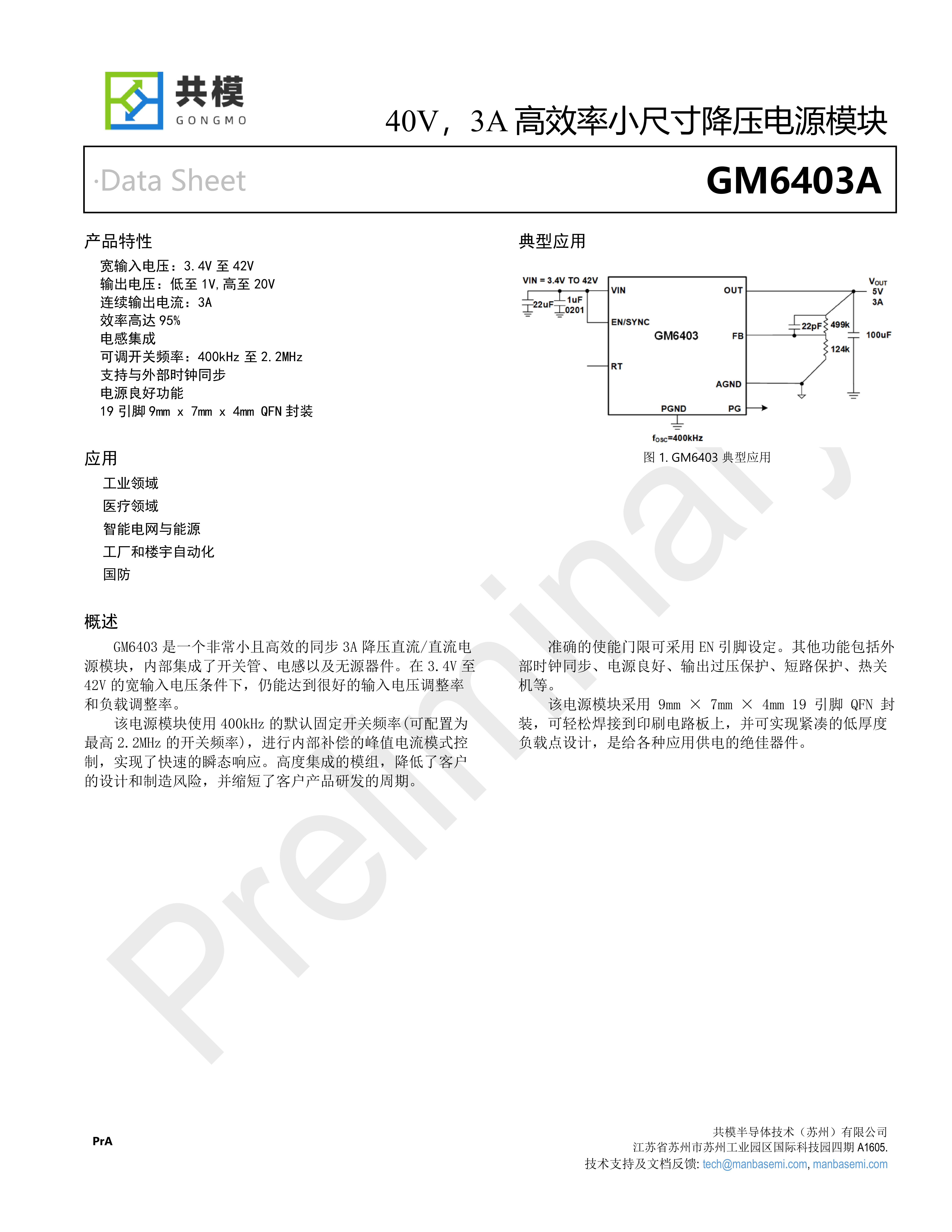 GM6403_國(guó)產(chǎn)替代LMZM33603,MPM3630_40V降壓電源模塊