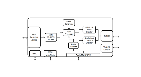 GSV1172使用QFN64封裝,針對(duì)低功耗嵌入式應(yīng)用。GSV1172支持HDCP 1.4,用于HDMI/DisplayPort輸出,支持HDMI/DisplayPort Tx的音頻插入。