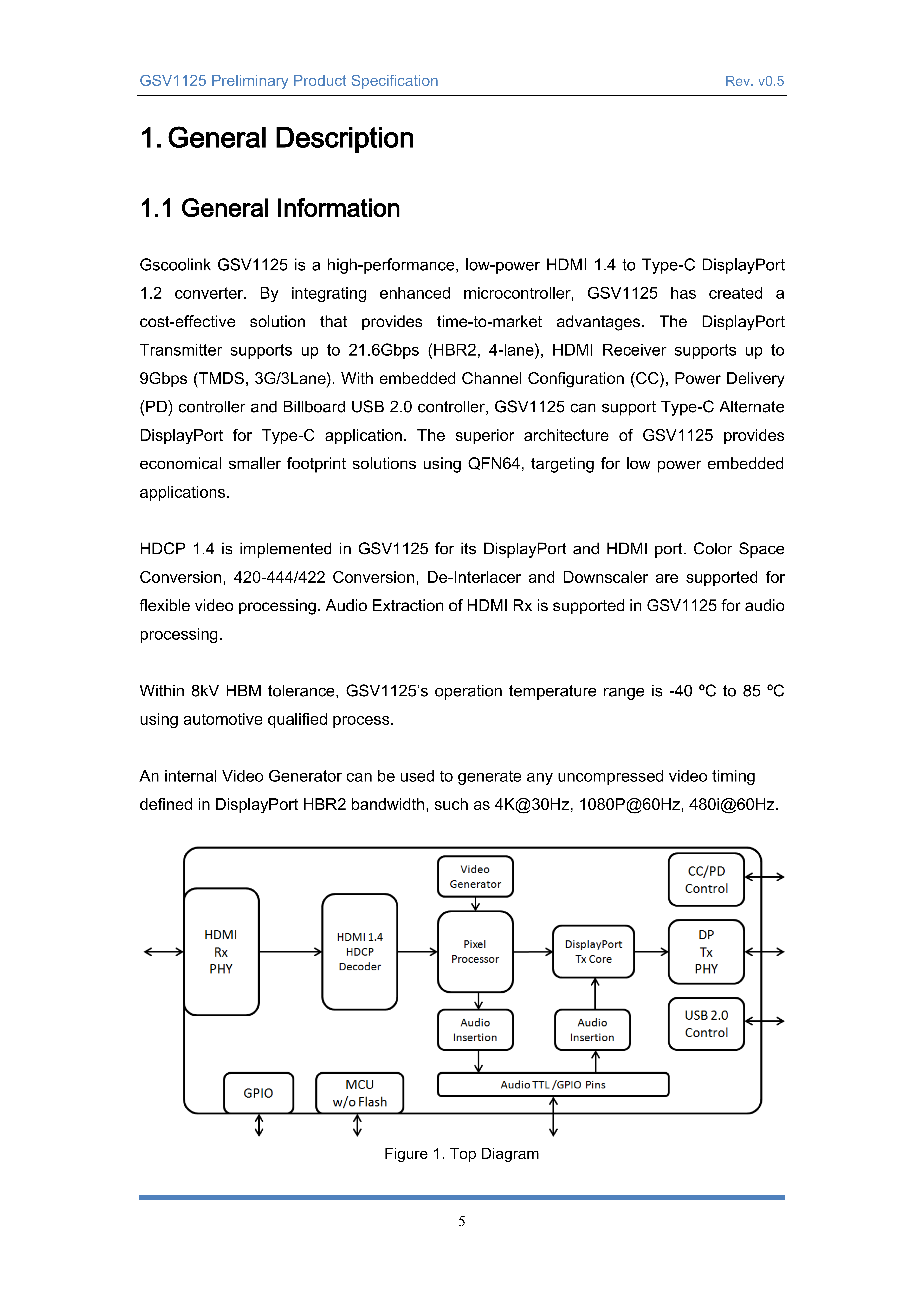 在8kV HBM容差范圍內(nèi),GSV1125采用汽車級工藝,工作溫度范圍為-40oC至85oC。