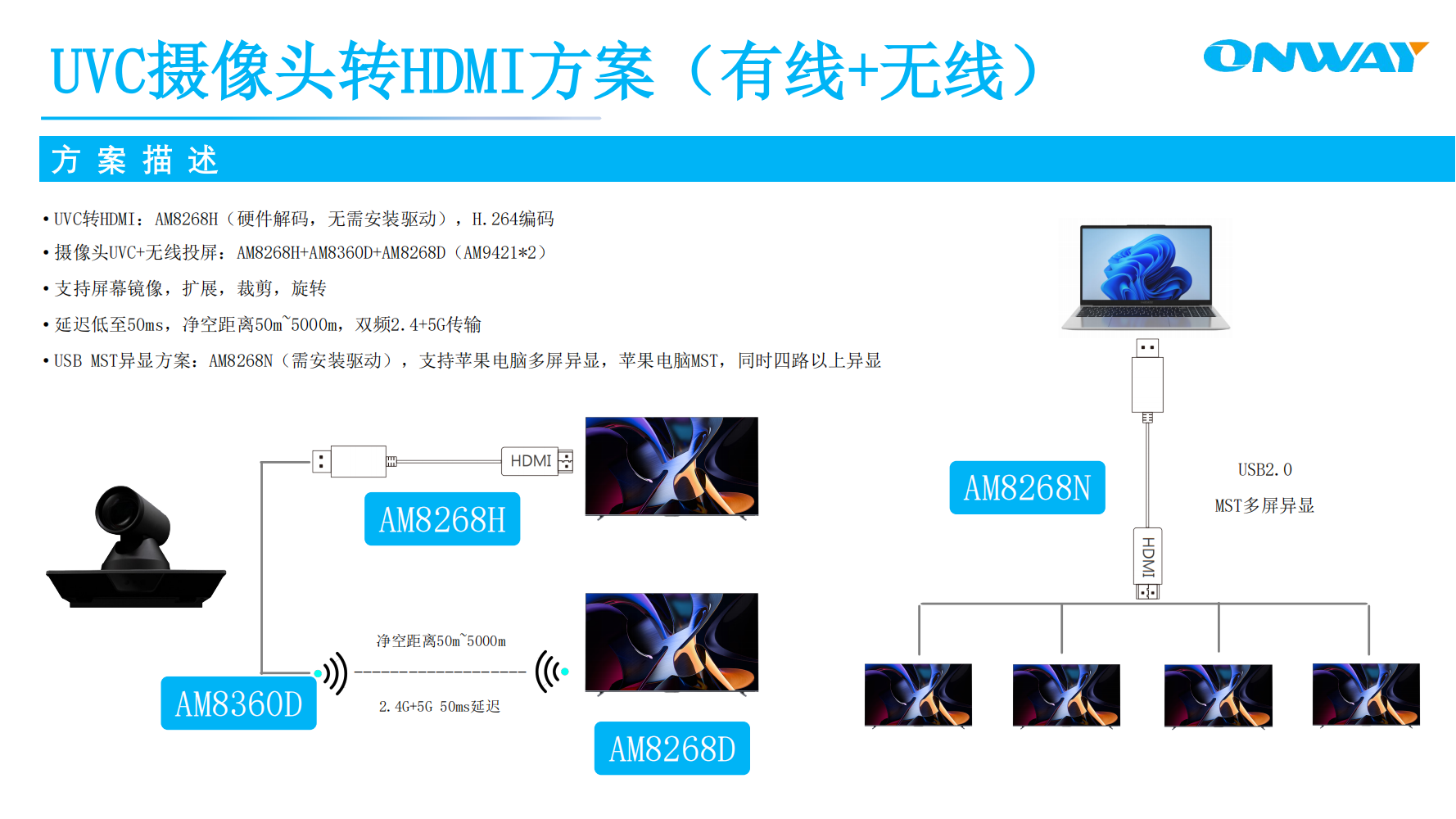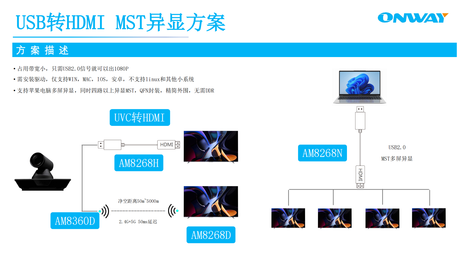 致力于音視頻解決方案,如無(wú)線投屏、USB耳機(jī)/麥克風(fēng)/聲卡、HDMI橋接/分配/切換/矩陣等;
