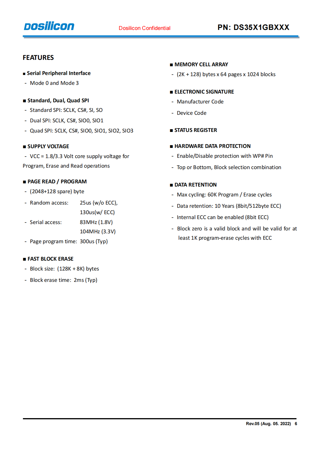 DS35Q1GB_3.3V/1.8V 1G-bit SPI NAND FLASH
