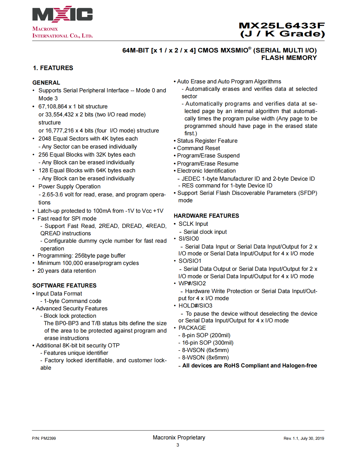 3V, 64M-BIT [x 1/x 2/x 4] CMOS MXSMIO? (SERIAL MULTI I/O) FLASH MEMORY
