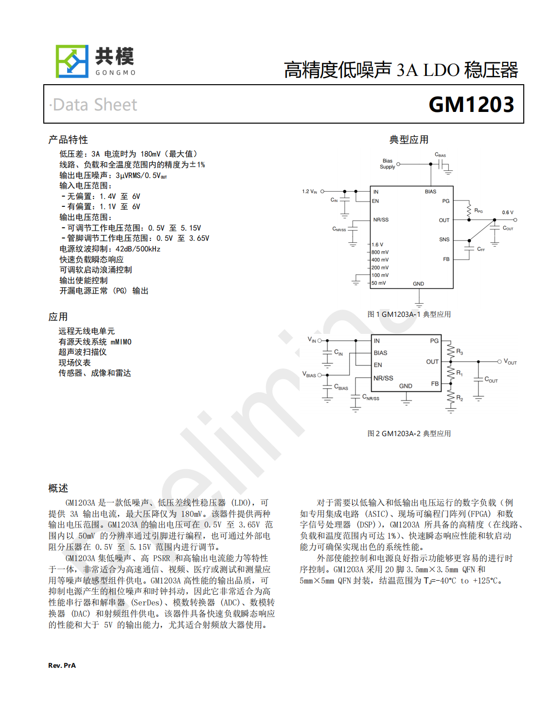 GM1203_高精度低噪聲 3A LDO 穩(wěn)壓器