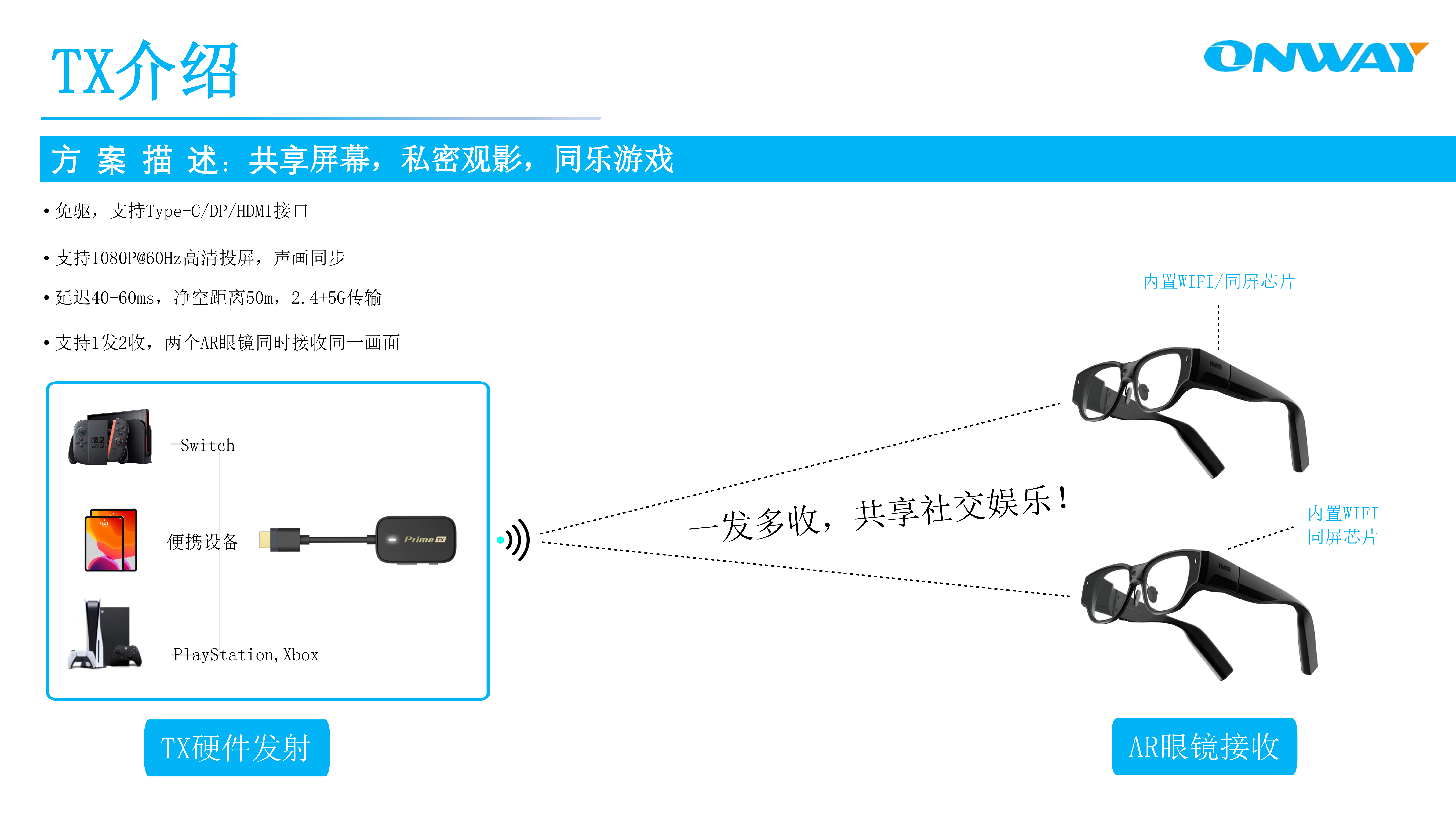 支持1發(fā)2收,兩個(gè)AR眼鏡同時(shí)接收同一畫面